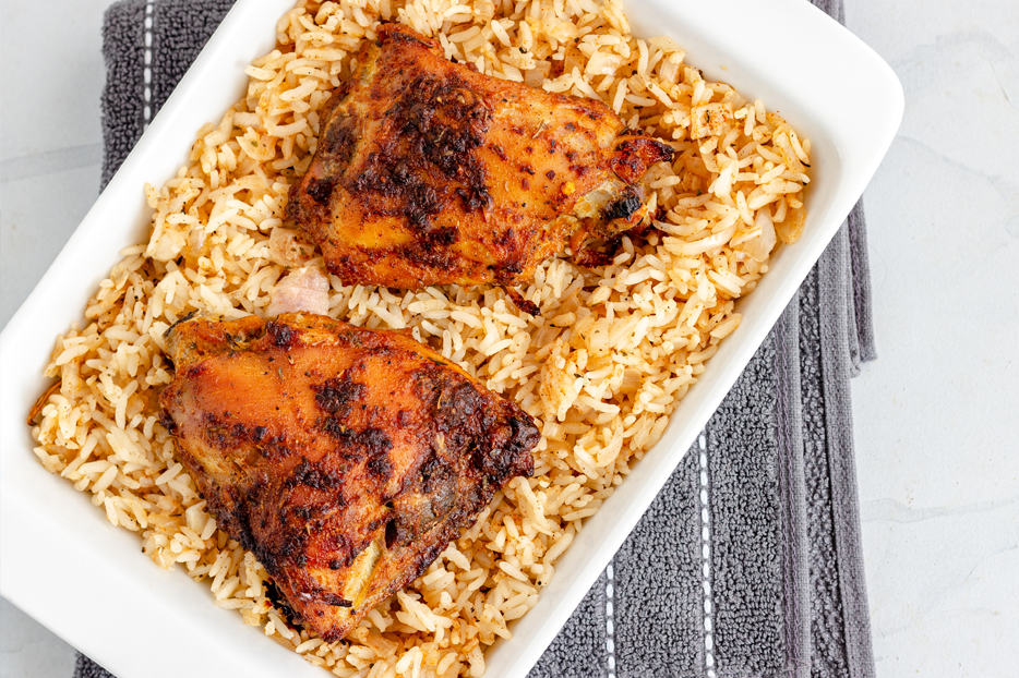 Pro tip: Want crispy skin on your chicken thighs? Broil them for a few minutes after you pull the dish from the oven!
